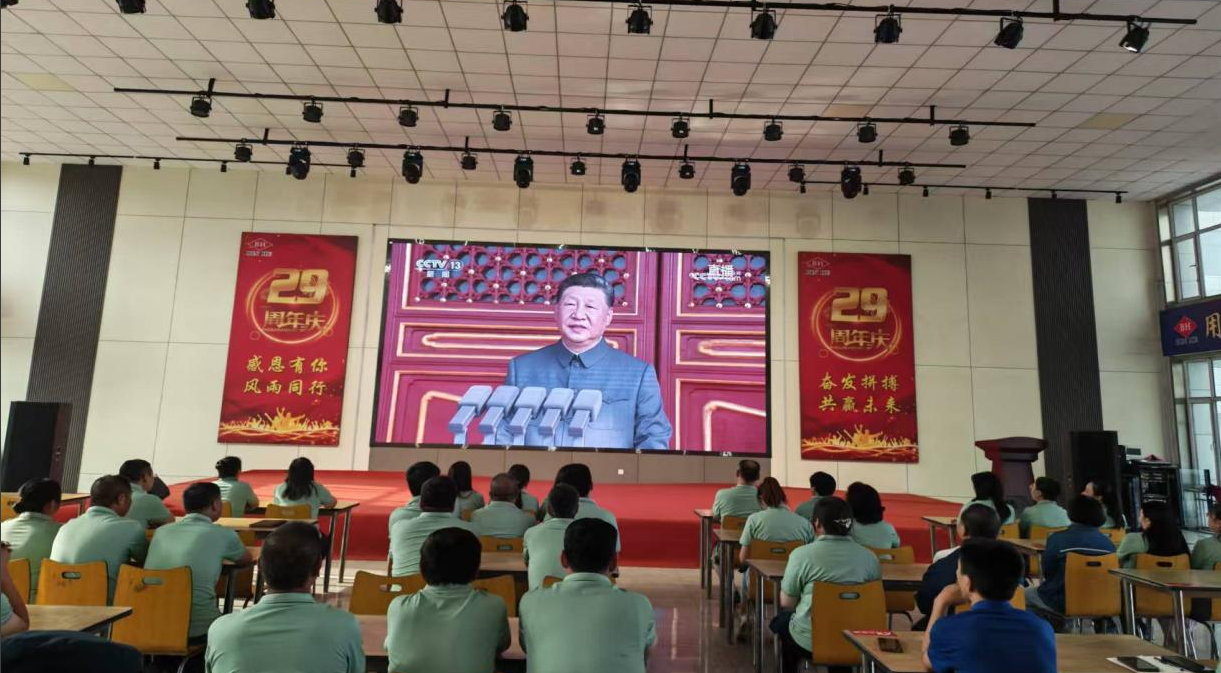 員工們全神貫注,認真聆聽中共中央總書記、國家主席、中央軍委主席習近平的重要講話。“正義必勝、和平必勝、人民必勝”的鏗鏘宣言,讓大家感受到磅礴力量,民族自豪感和愛國之情油然而生。