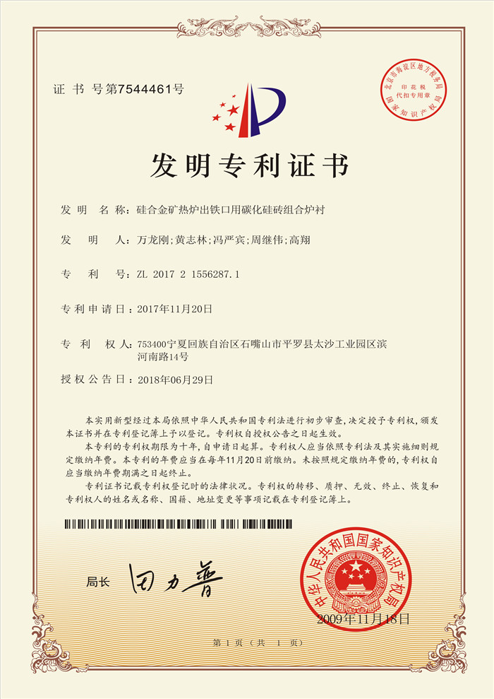 中鋼硅合金礦熱爐出鐵口用碳化硅磚組合爐襯